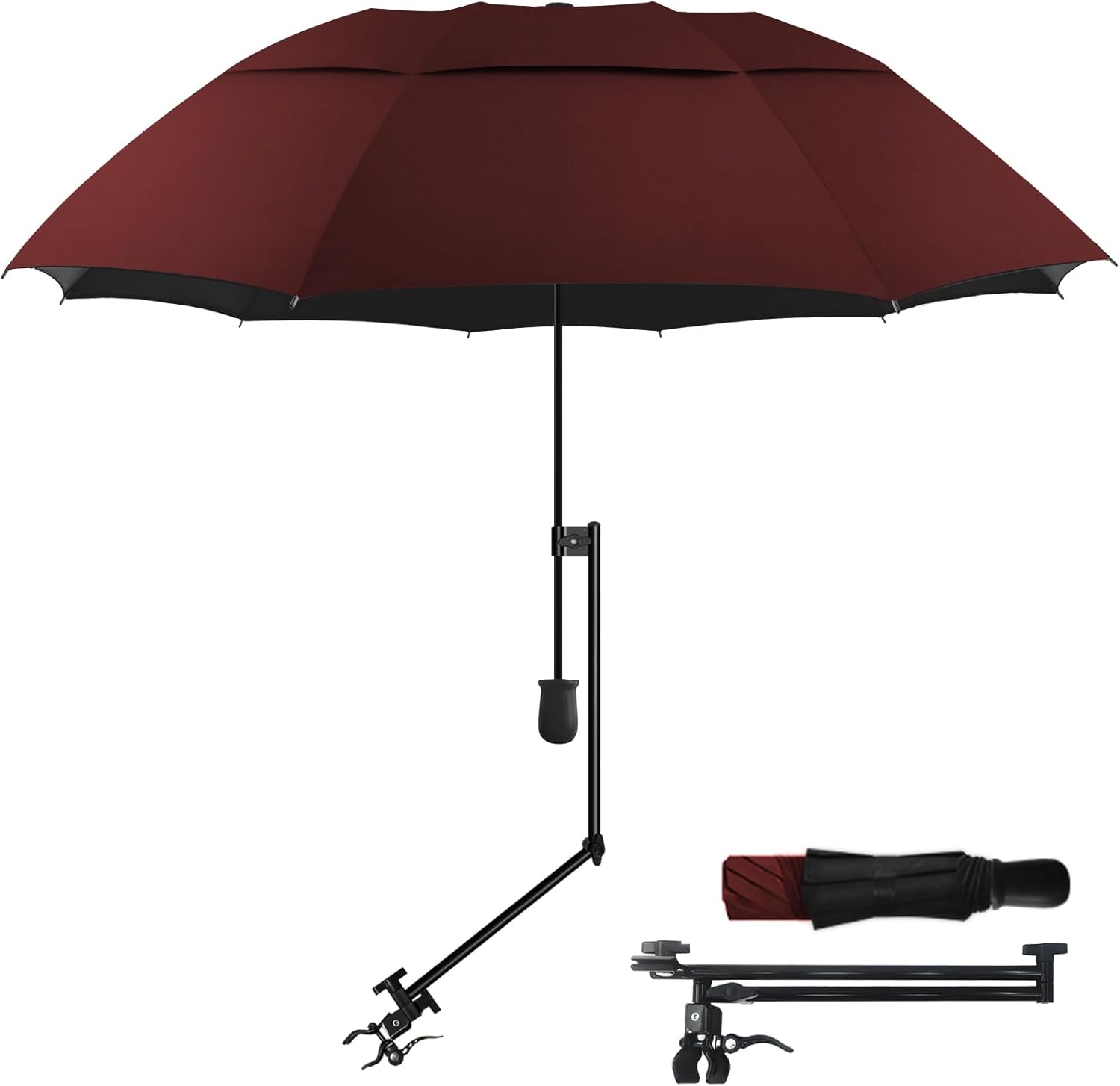 UPF 50+ Golf Umbrella with Adjustable Universal Clamp, Portable Umbrellas for Rain, Manual Open & Close, for Beach Chair, Golf Cart, Stroller, Bleacher, Patio